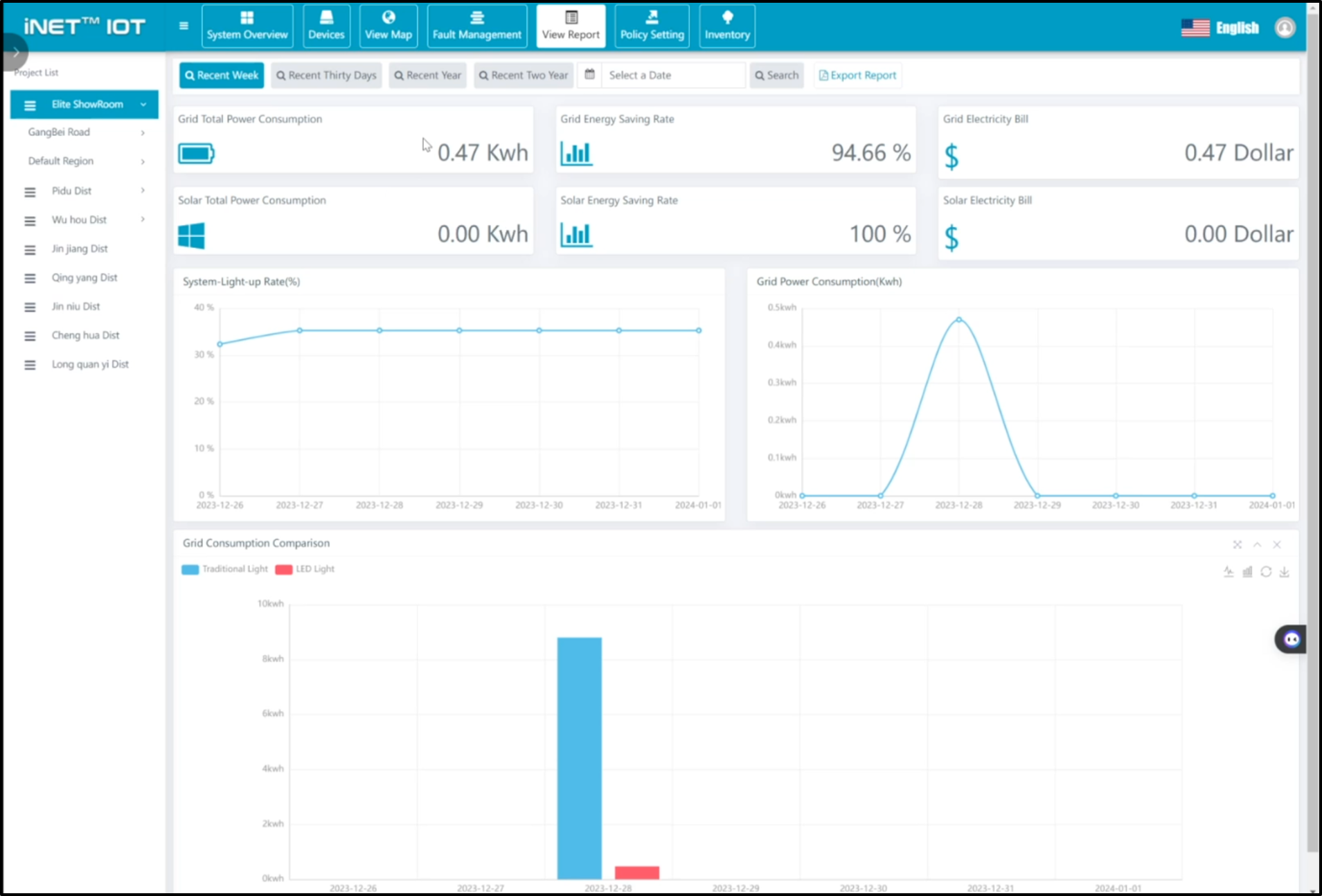 Discover how energy and usage for each streetlights across the district or a particular neighbour/street is consuming and at what time